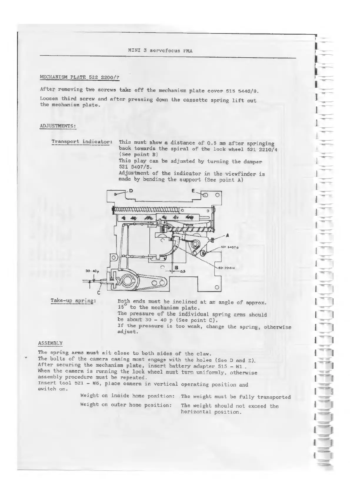 Eumig MINI 3 SERVOFOCUS - MECHANISM PLATE 522 2200;7; Adjustments; Assembly