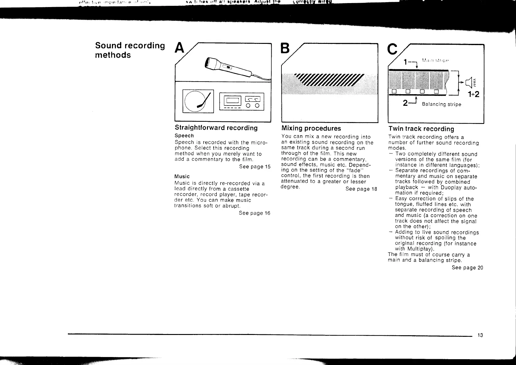Eumig S940 - Sound Recording Methods; Straight Forward Recording; Mixing Procedures; Twin Track Recording