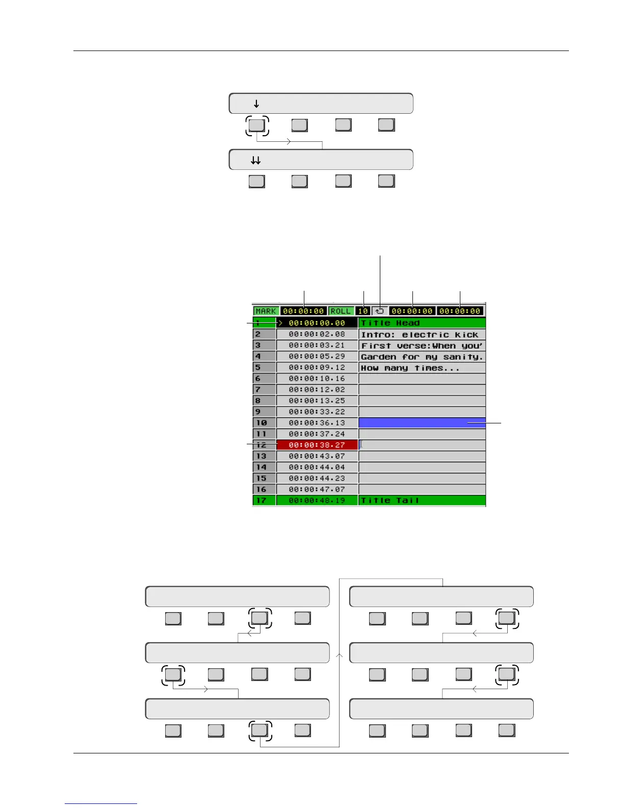The Cue List menu and screen are viewed by pressing [F1] (down arrow) from