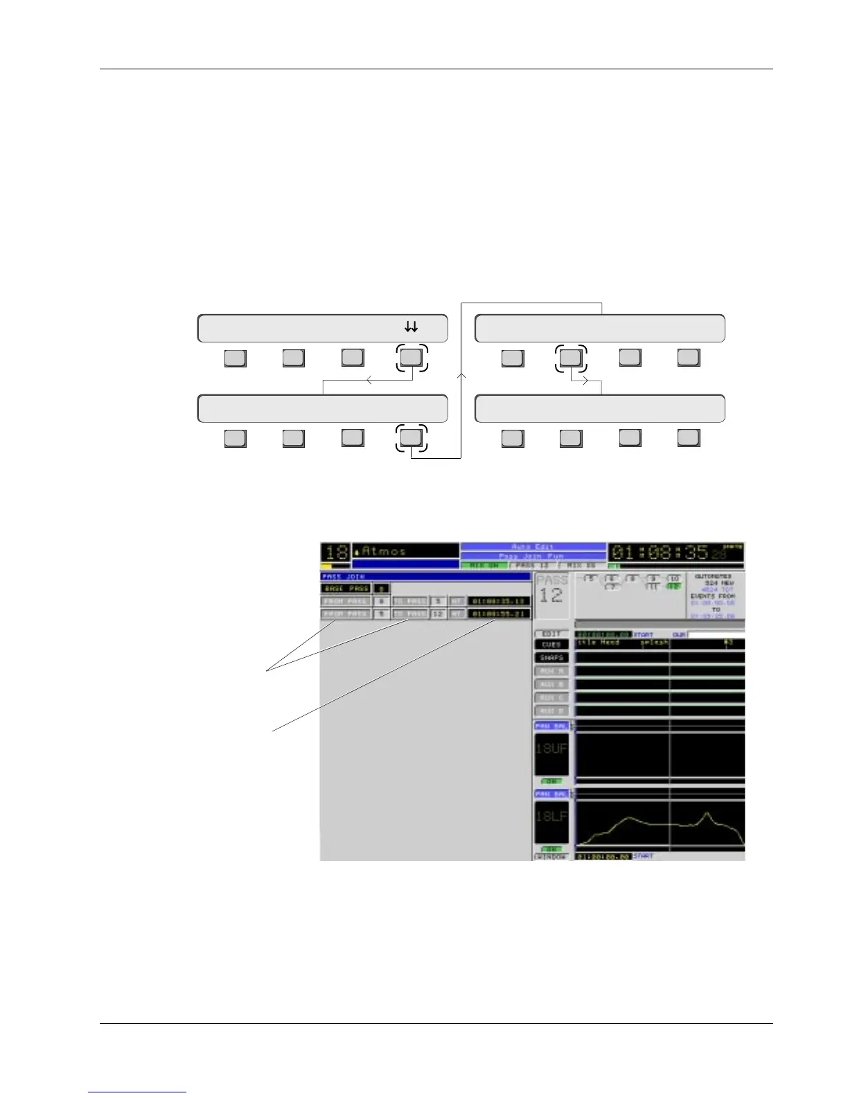 Stop timecode and view the Pass Join menu and list. From the top-level Pass