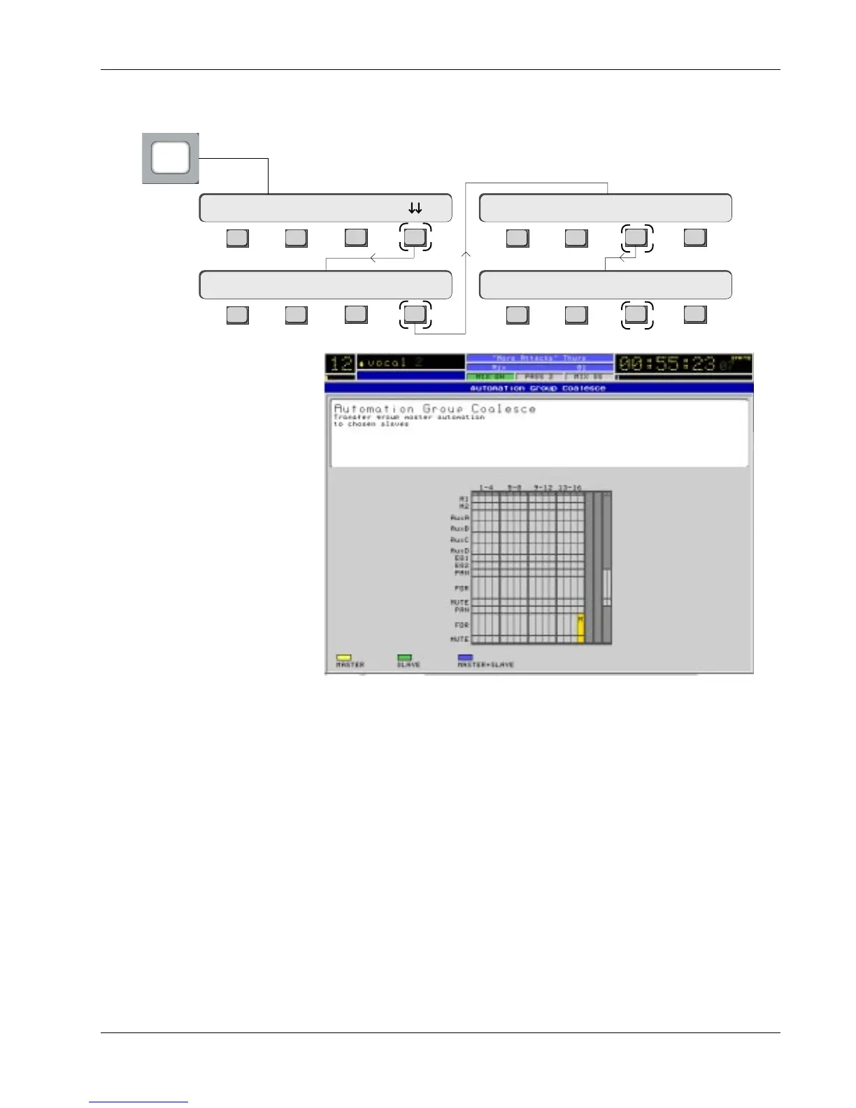 To access the Coalesce menu and screen, press the DSC [Pass Ctrl] key, [F4]