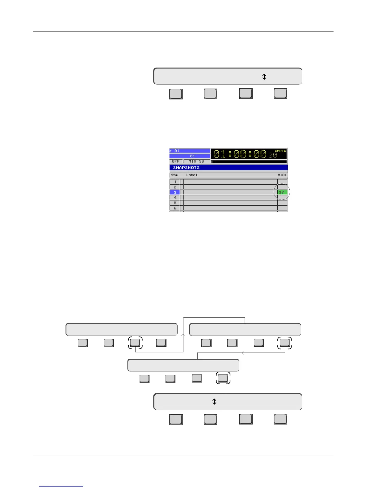 From the top level MIDI menu, press [F4] (SS->SS) to display the SnapShot