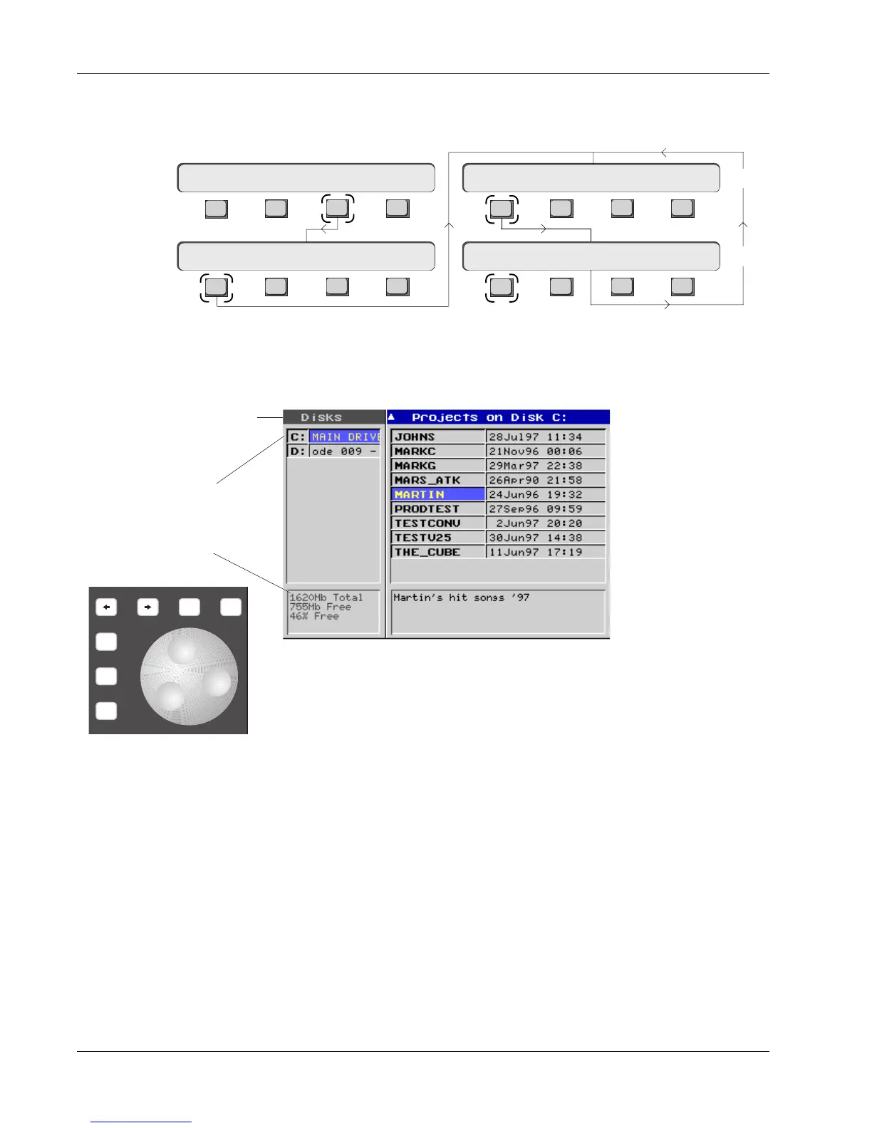 the list. You can select different disks with the DSC [+]/[–] keys and the
