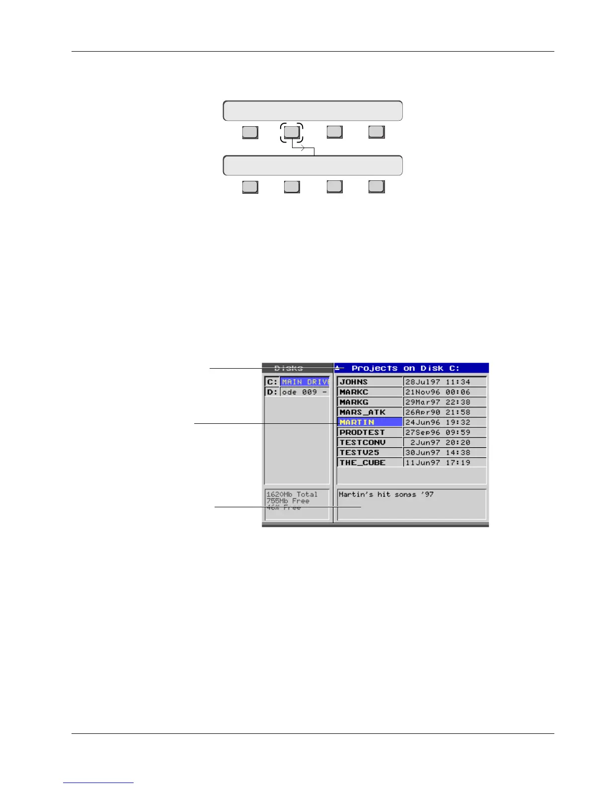 field. Pressing [Tab] again gets you back to the Project list. You can return to