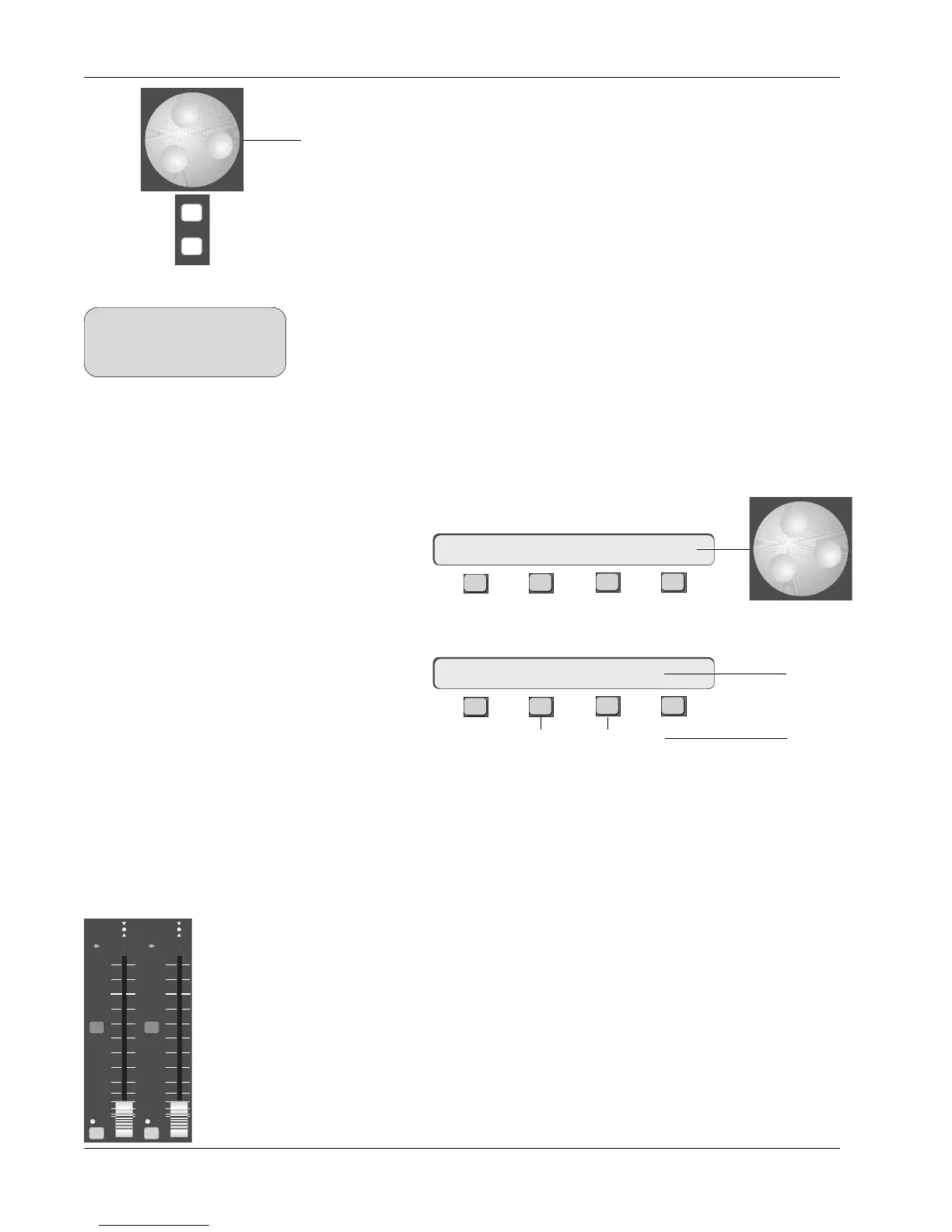 the bottom left of the fader block. A green LED above the ON button shows