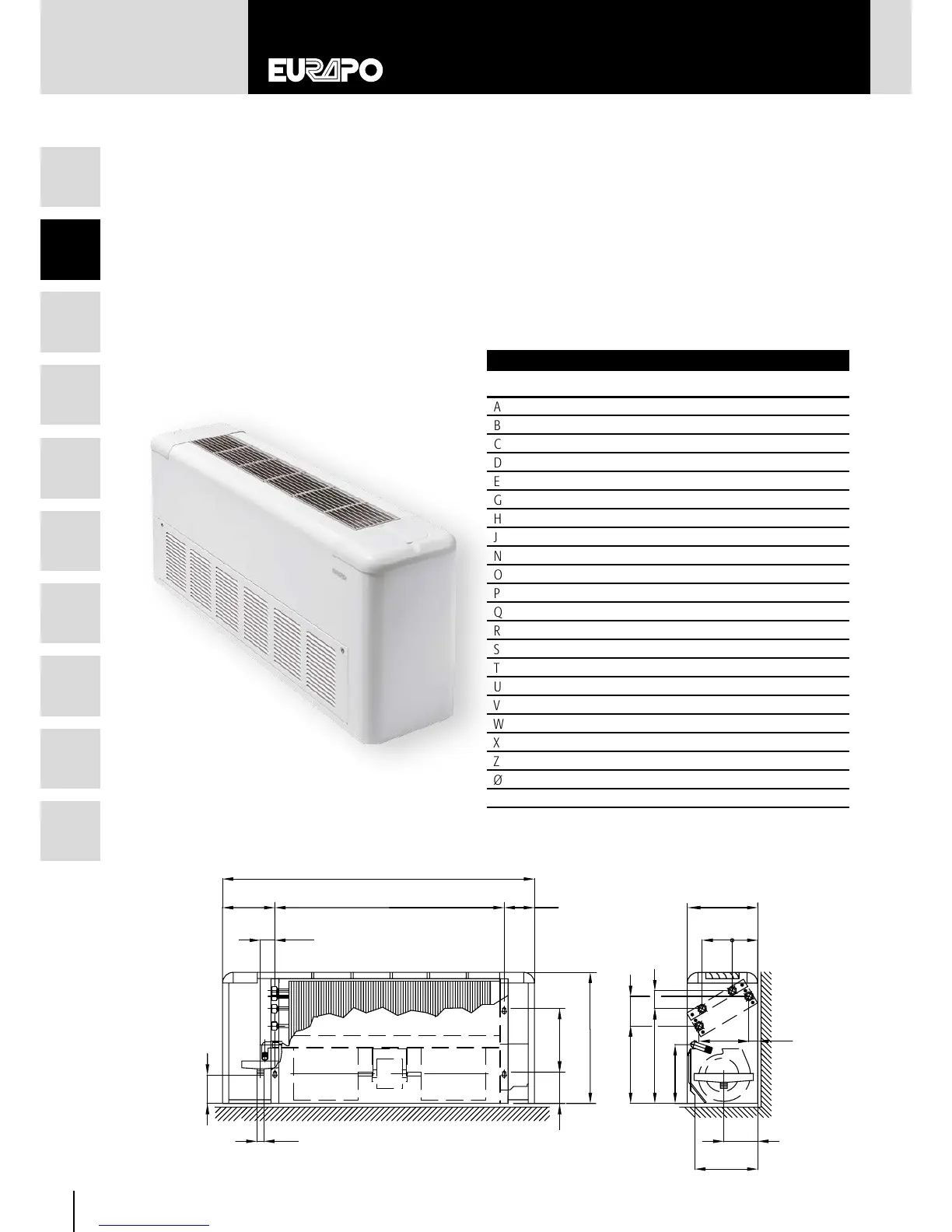 Vertical unit in a reduced height (430 mm) with upper air outlet and frontal air intake, to be installed on the floor.