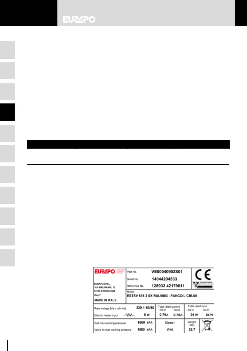 Les données spécifiques de l’unité à installer se trouvent sur la plaquette située sur un côté