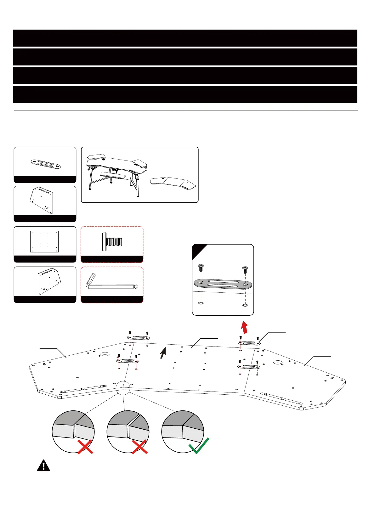 Before tightening the screws, make sure that the two desktop pieces are aligned.
