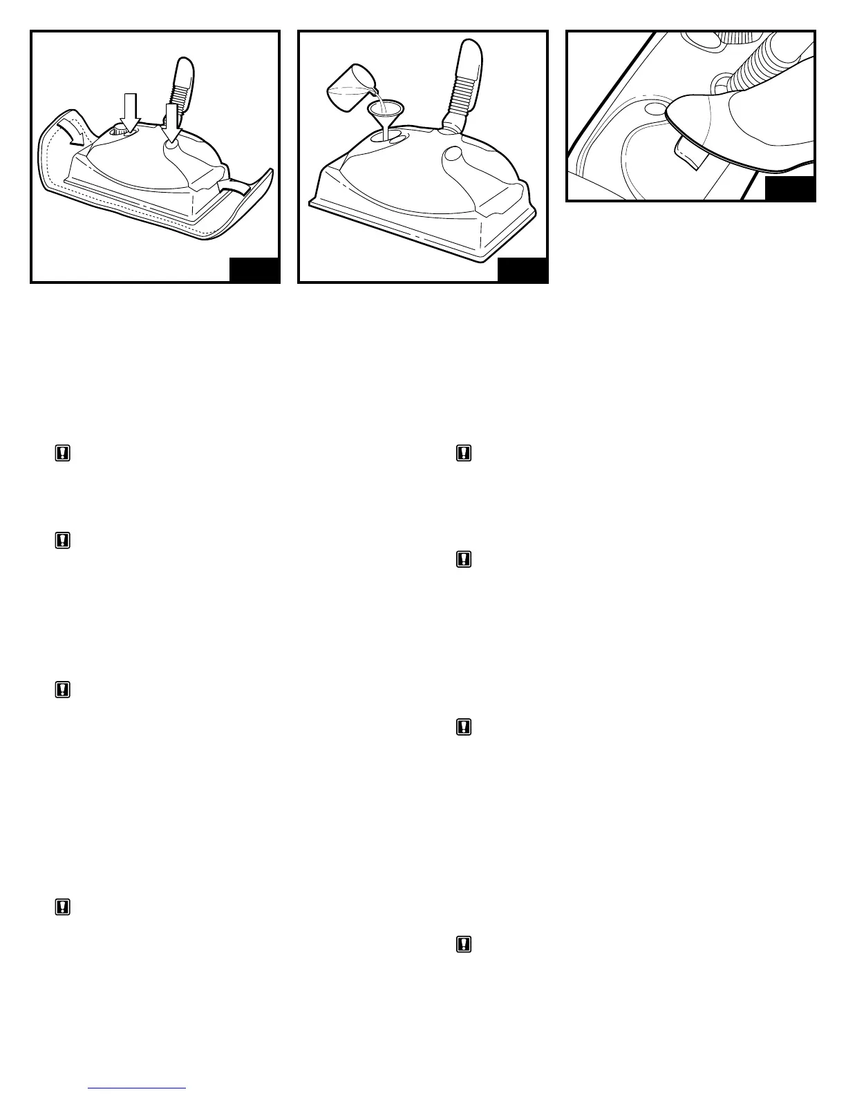 WARNING: Never turn the floor steamer over, or on its