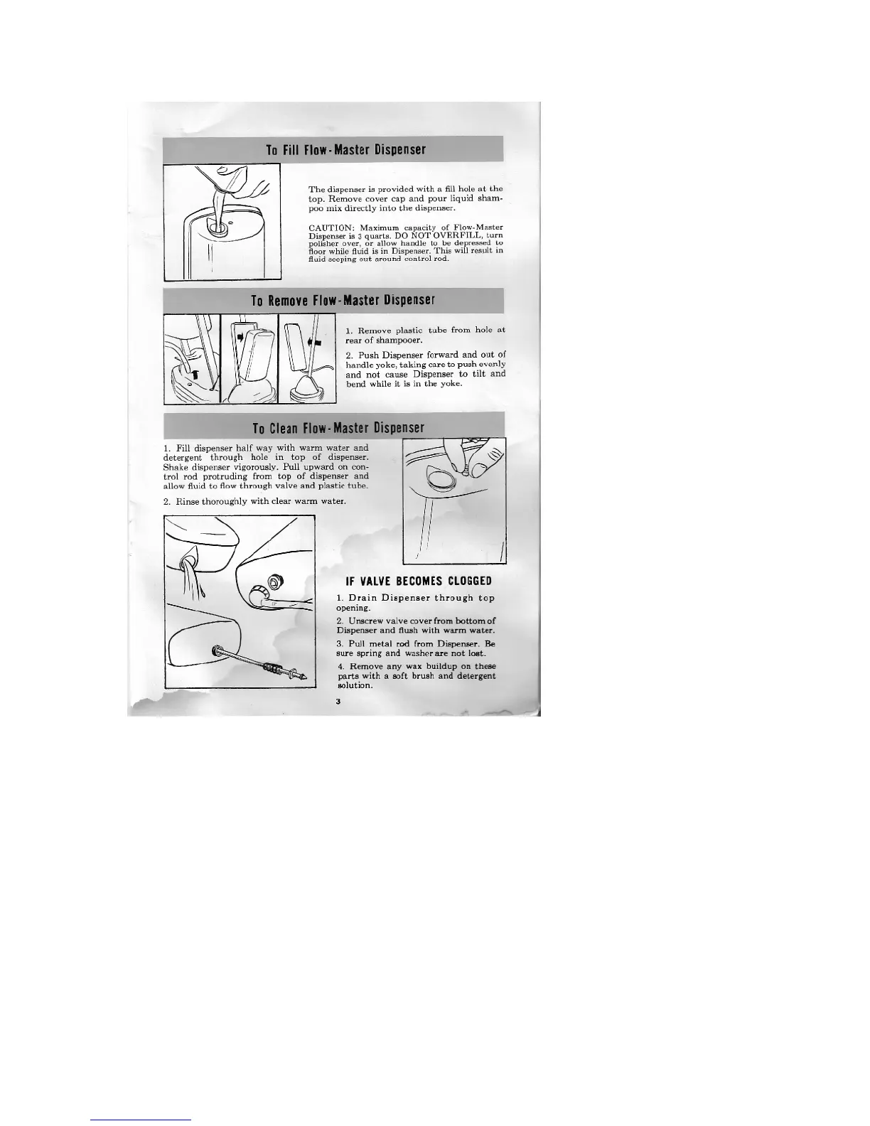 Eureka 34 - To Fill Flow-Master Dispenser; To Remove Flow-Master Dispenser; To Clean Flow-Master Dispenser; If Valve Becomes Clogged