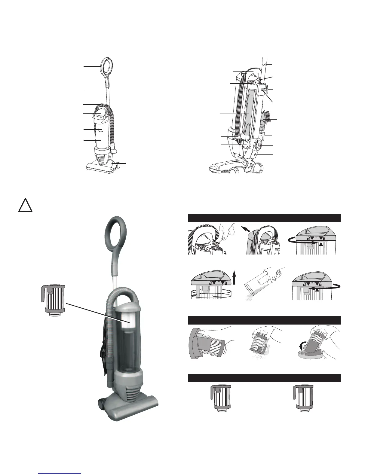 READ ALL INSTRUCTIONS BEFORE USING THIS VACUUM CLEANER. Moving parts! Make sure power switch is in OFF (O) position before plugging in power cord.