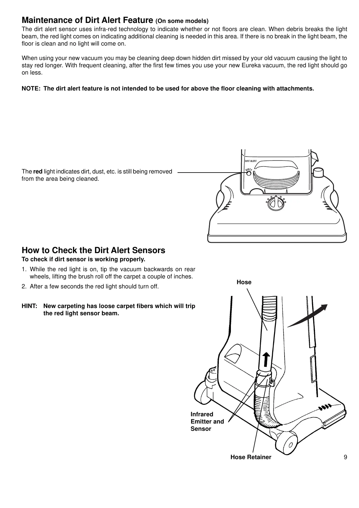 NOTE: The dirt alert feature is not intended to be used for above the floor cleaning with attachments.