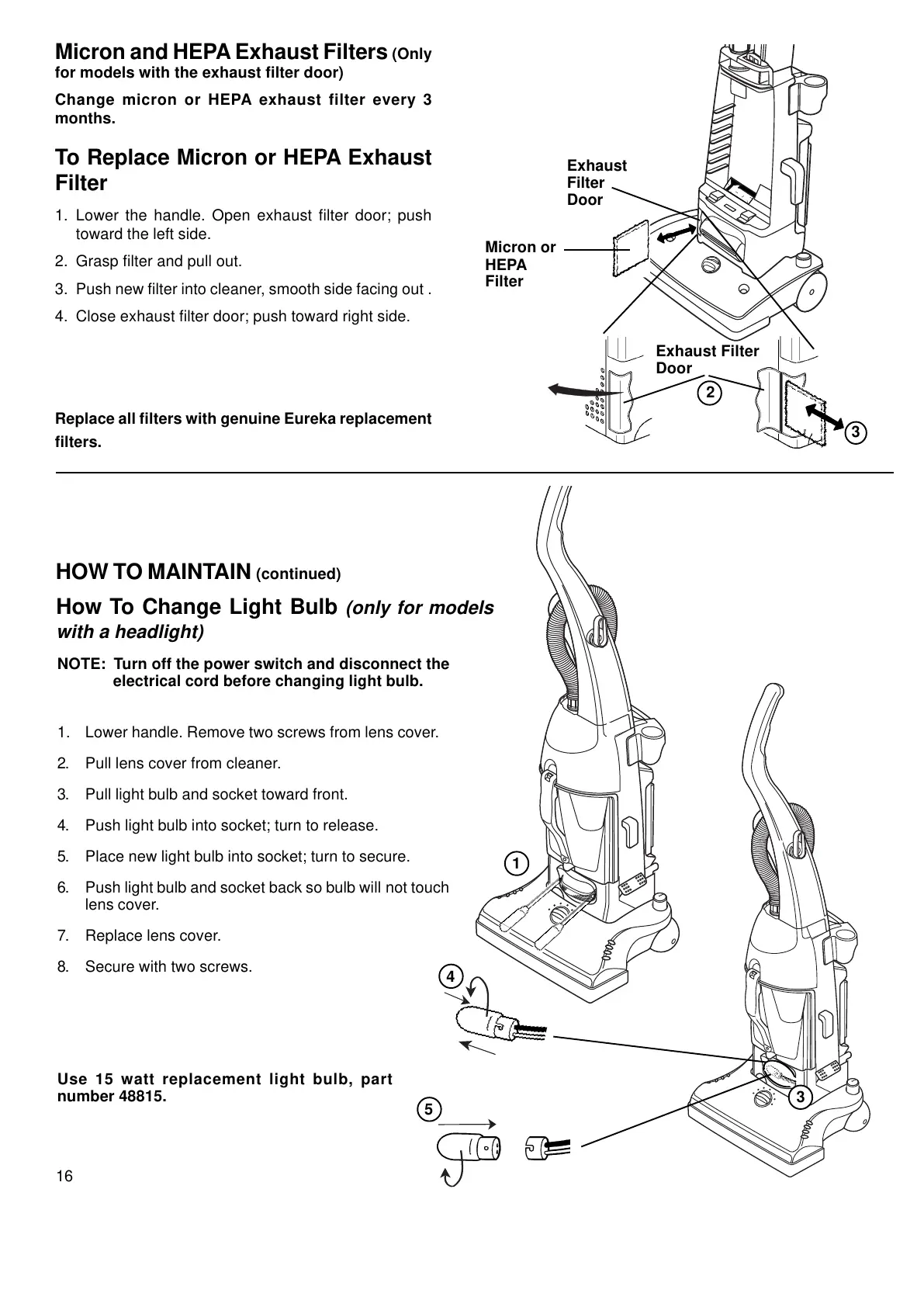 Replace all filters with genuine Eureka replacement