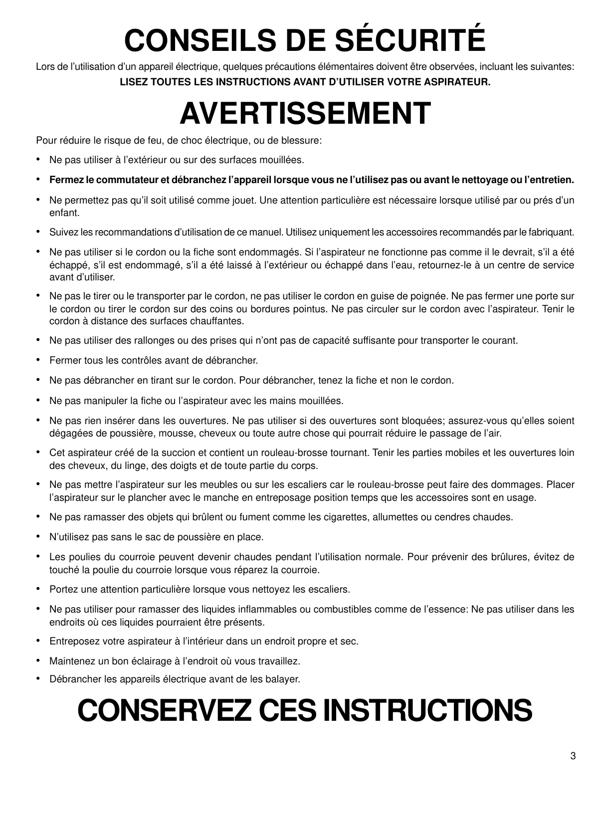 LISEZ TOUTES LES INSTRUCTIONS AVANT D’UTILISER VOTRE ASPIRATEUR.