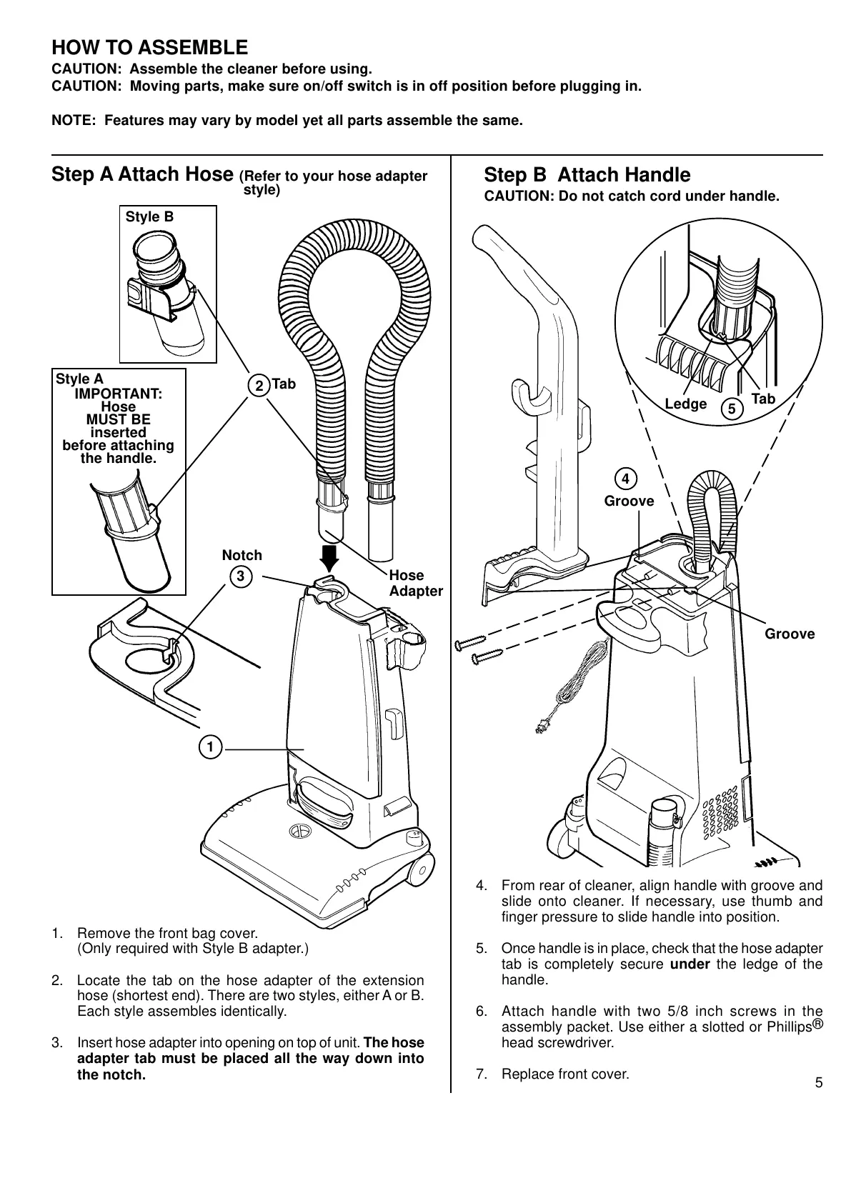 CAUTION: Assemble the cleaner before using.