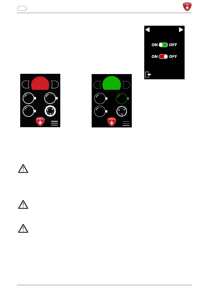 When grinding by weight is ON the main screen will be red.