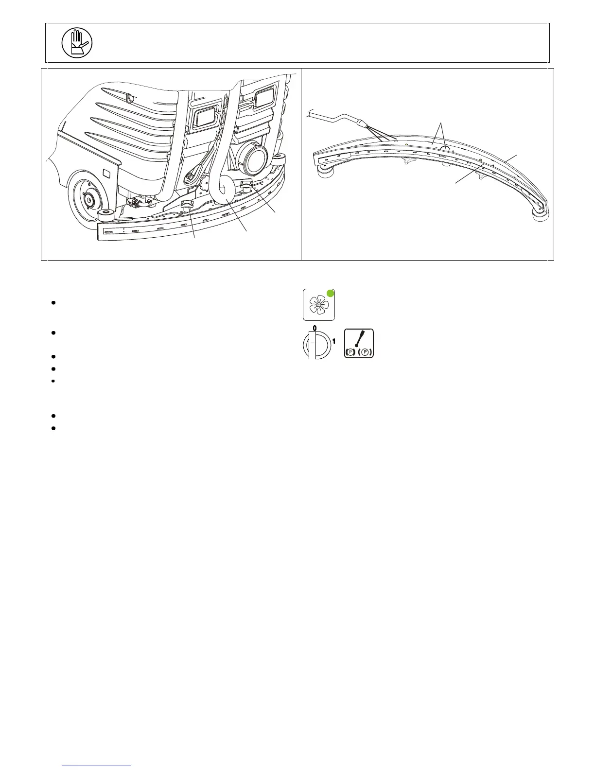 vacuum flow, remove any pieces or incrustations from the lower part and from the mouth of the squeegee (see position