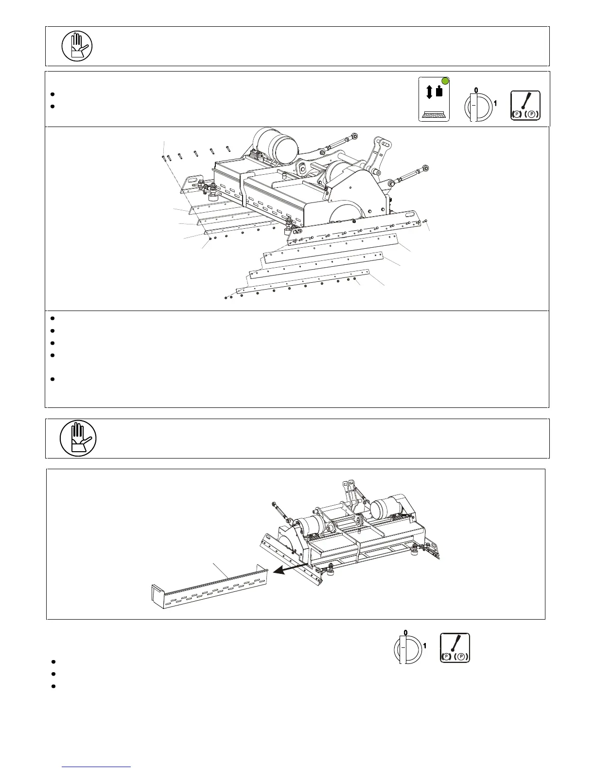 With the lifted plate turn off the machine and remove the key, insert the brake.