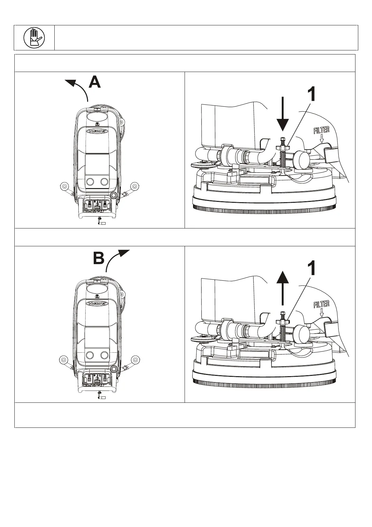 IMPORTANT: this adjustment must be made with the machine operating, full of water, with squeegee