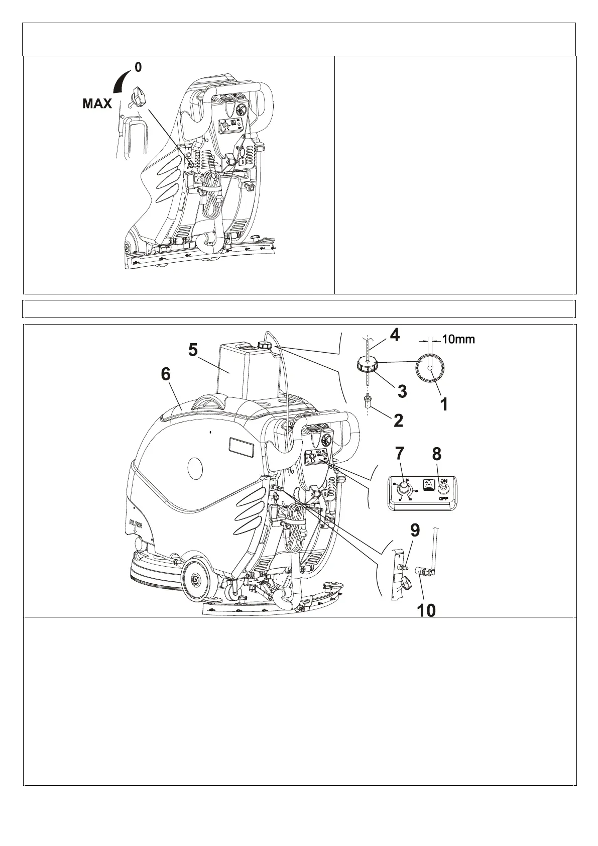 Activate the system by the switch pos. 8 and adjust the detergent quantity by the knob pos. 7.