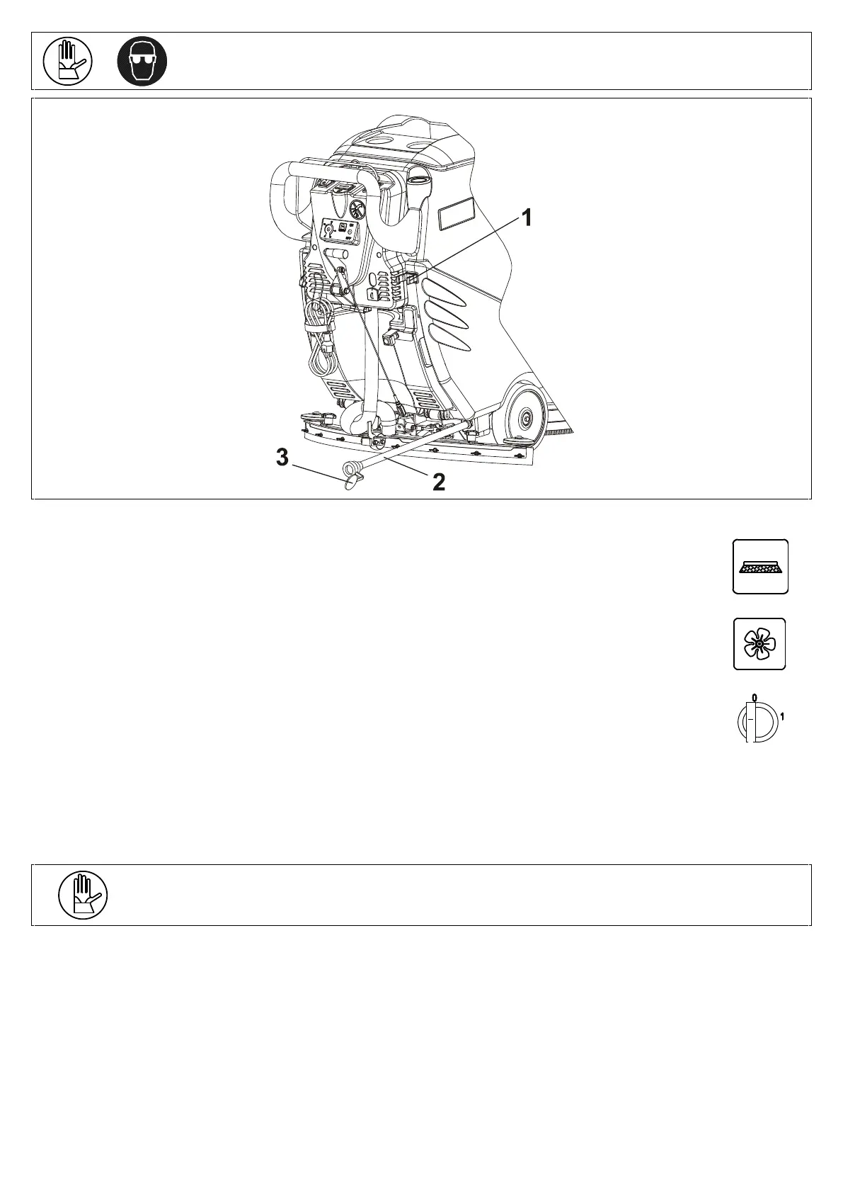 Disengage the brush function and close the solution tap if the machine does not feature a