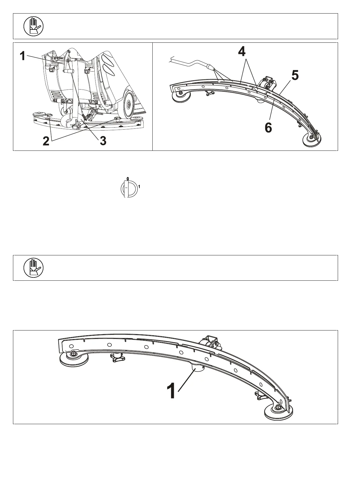 Block the squeegee in upturned position as shown in the picture, using the pipe pos. 1 and avoiding any crushing of