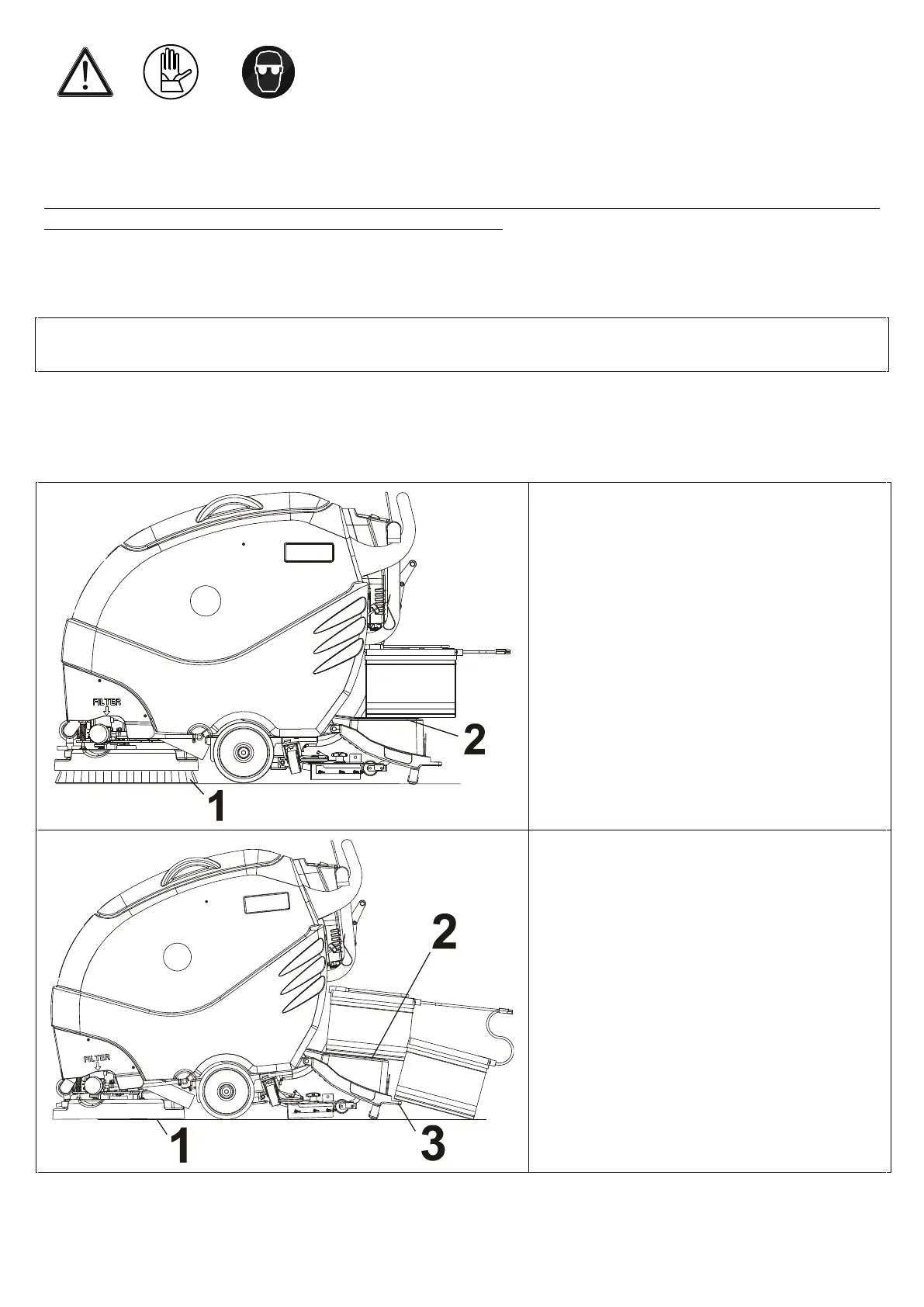park the machine on a flat surface and remove the key (if available).