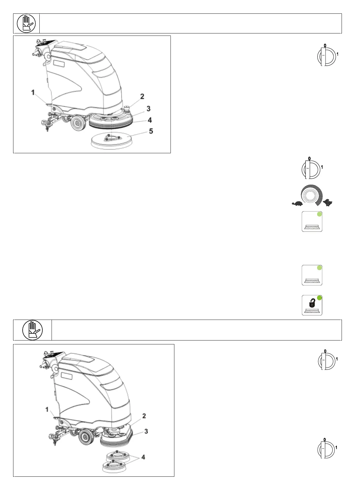 Slowly push forward the drive control and release it as soon as the brush starts rotating. The brush motor will rotate for