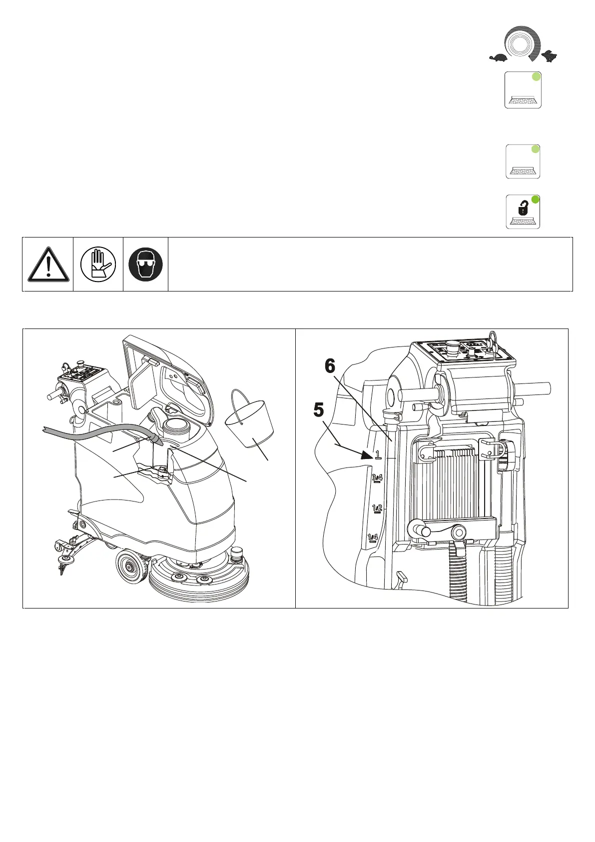 Slowly push forward the drive control and release it as soon as the brush starts rotating. The brush motor will rotate for