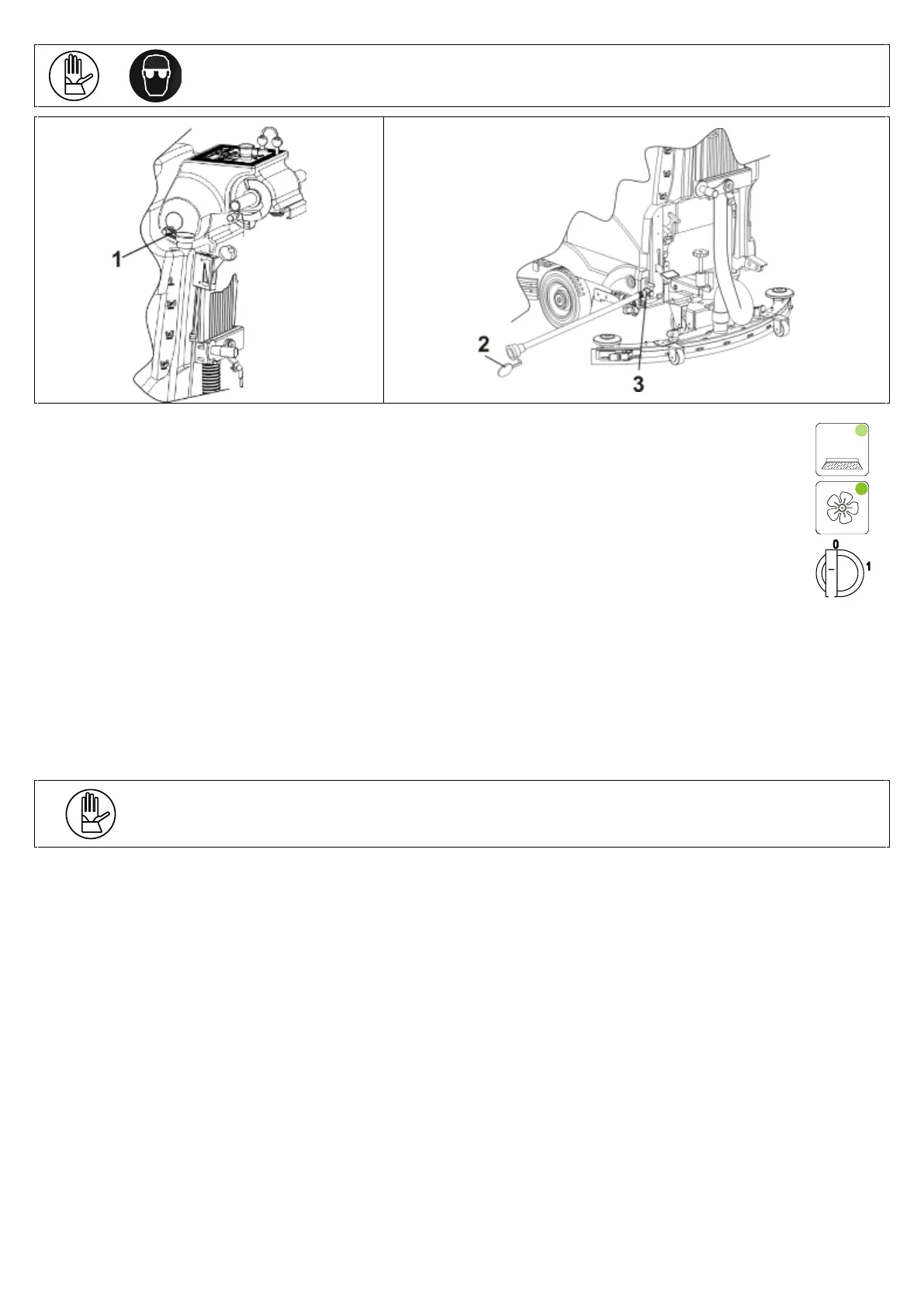 Lift the squeegee using the special lever, turn off the suction fan and go to the tank drainage area;