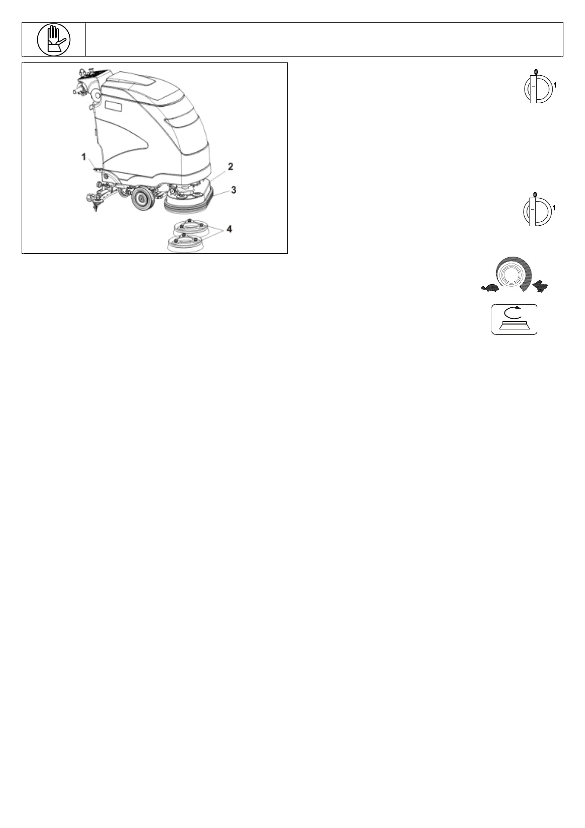 Slowly push forward the drive control and release it as soon as the brush starts rotating. The brush motor will rotate for