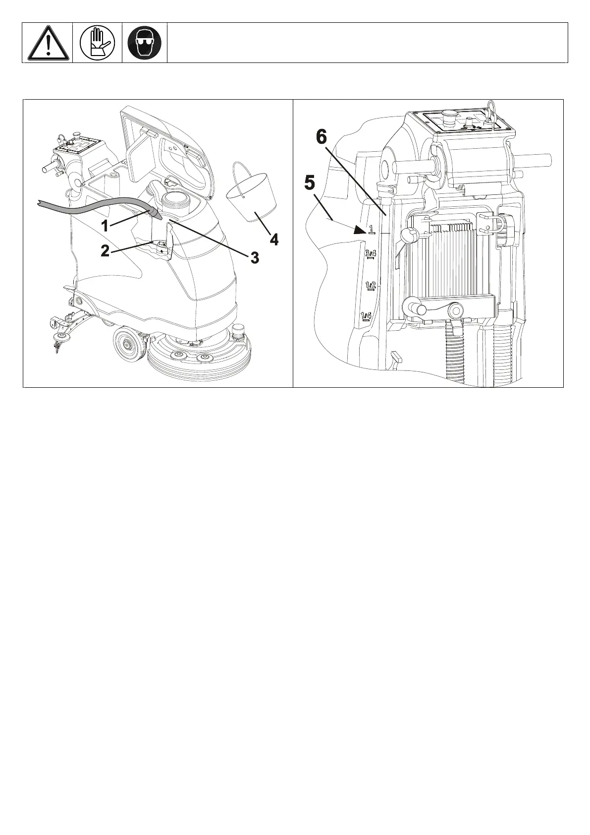 Use either a rubber hose (see position 1) connected to the water distribution system or a clean bucket (see position 3) and