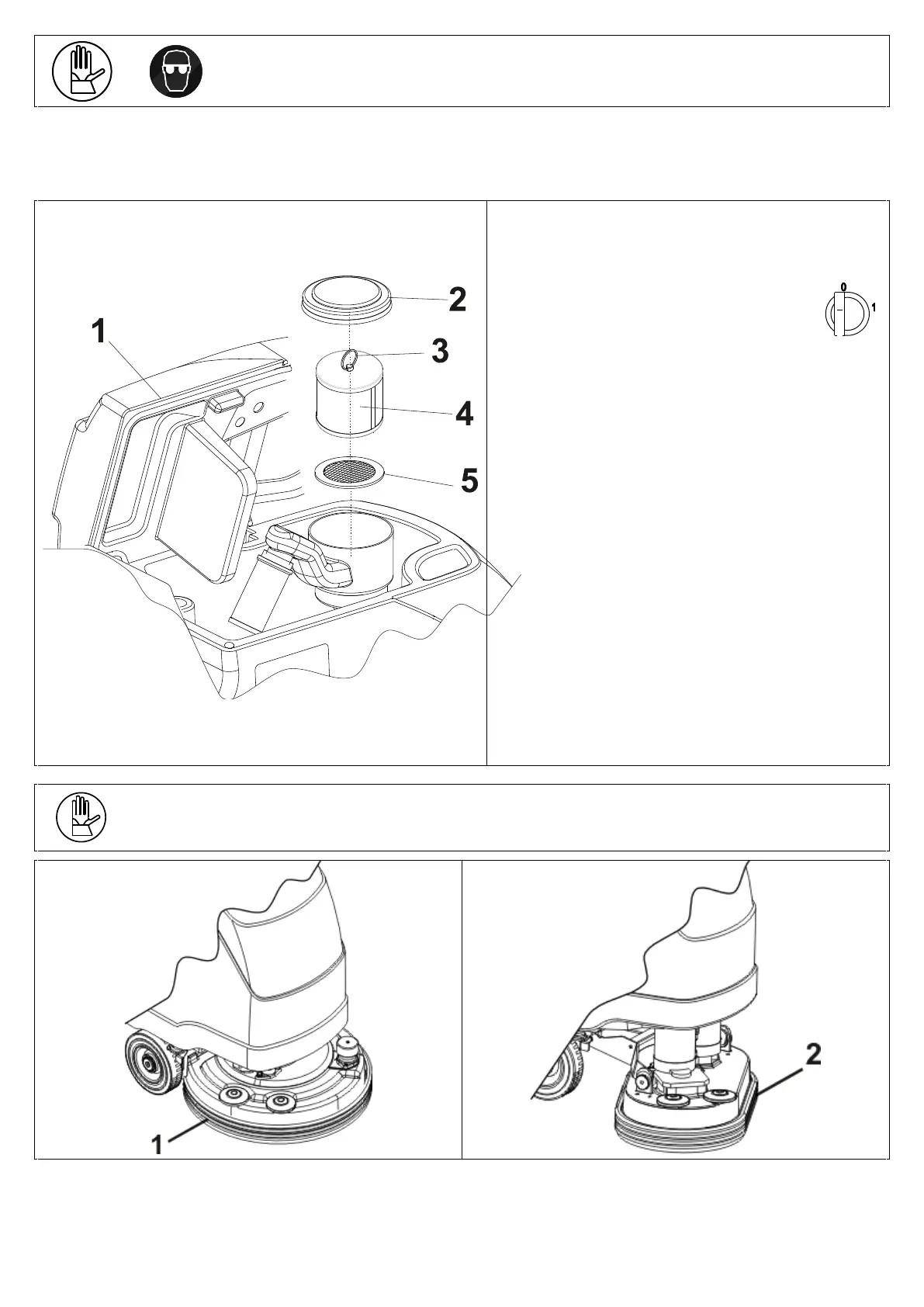 The machines are fitted with a washable cartridge filter on the suction duct, which provides two functions: