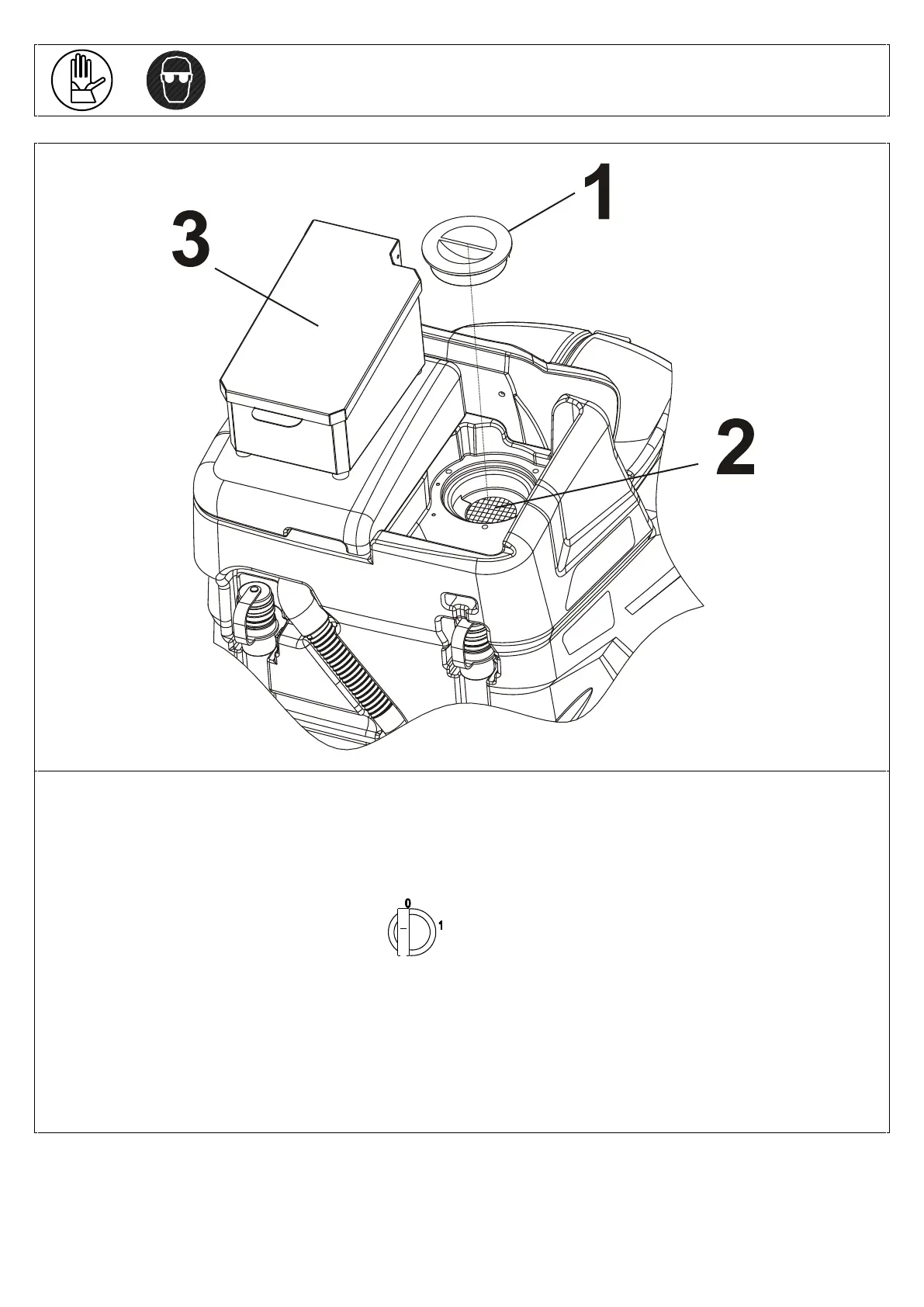 • Put the cap (pos. 1) back on and make sure to tighten it correctly.