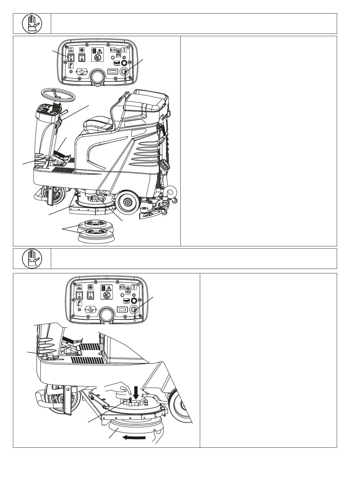 • Lower the brush plate (pos. 2) using the pedal (pos. 4)