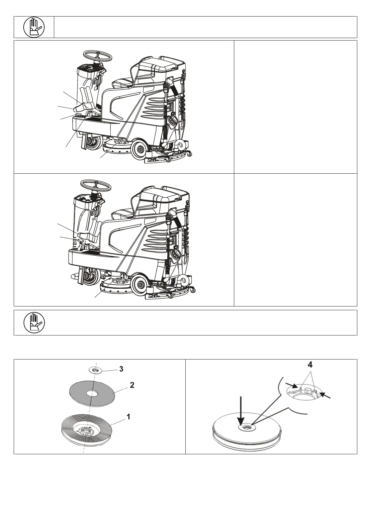 • Place the disc lock (pos. 3) on the centre and apply force pushing it until the spring (pos. 4) locks into place. Use the