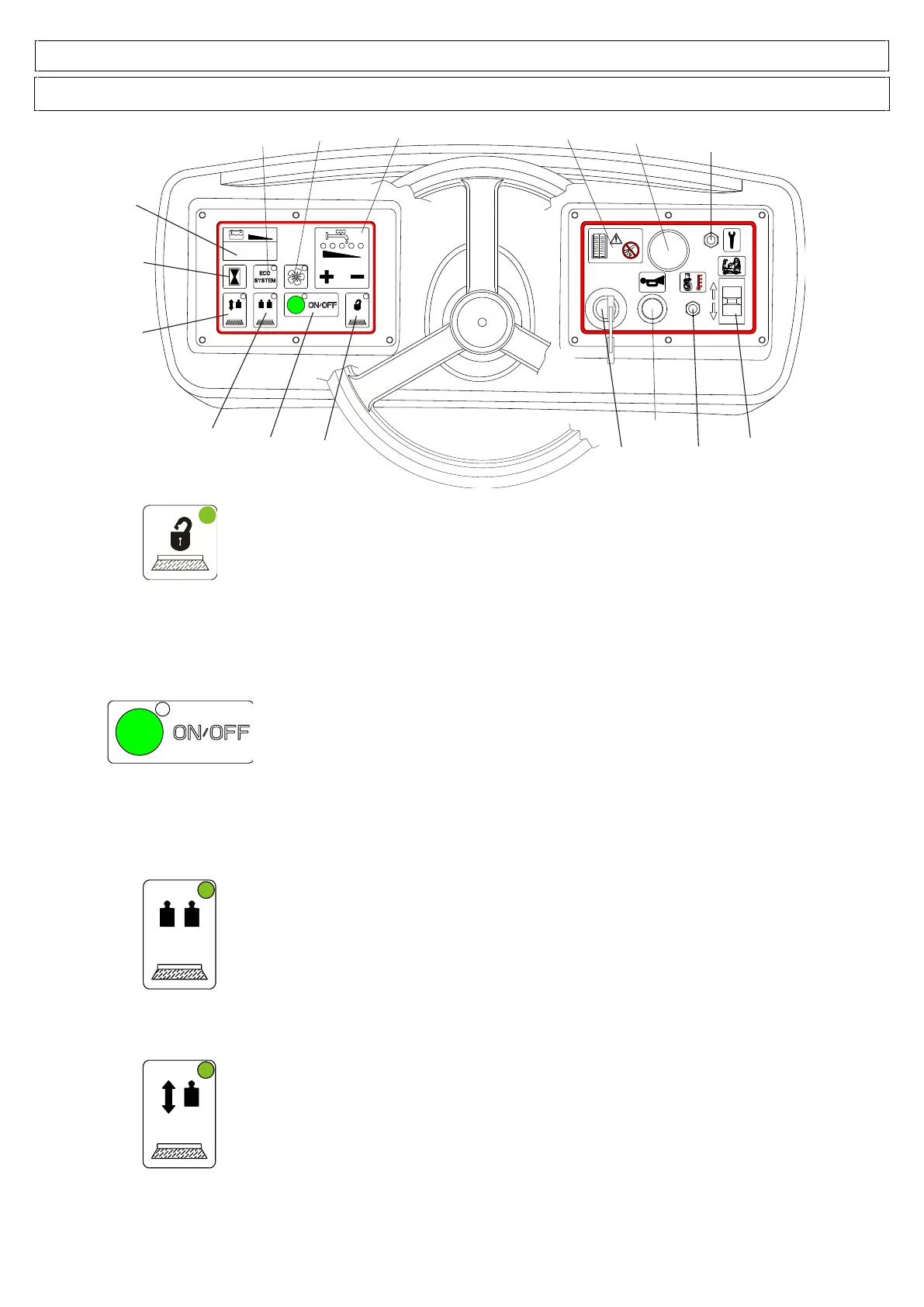 once to lower the brush plate and the squeegee, the led lights on this button and on the