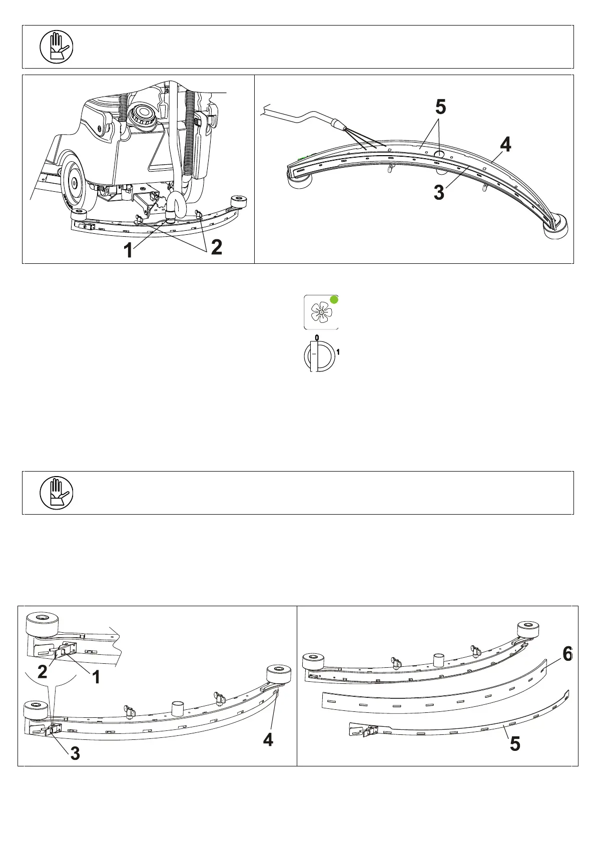 Unscrew both screw knobs (see position 2 and remove the squeegee vacuum pipe (see position 1);