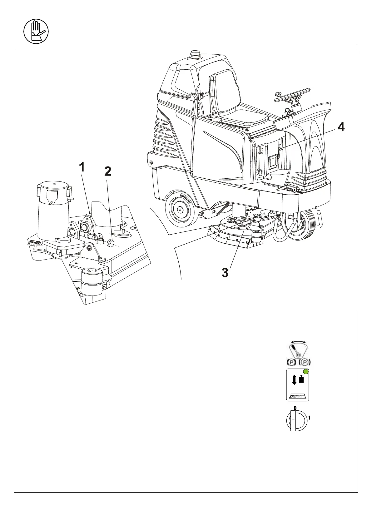 Lower the brush plate pos.3 by pressing the special button in the control board;