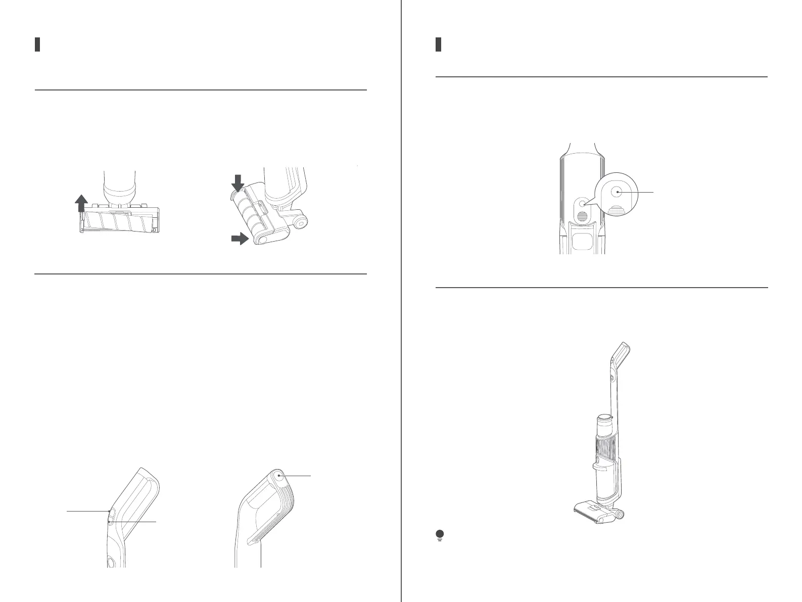 To assemble the roller brush, hold the roller brush handle by hand, align