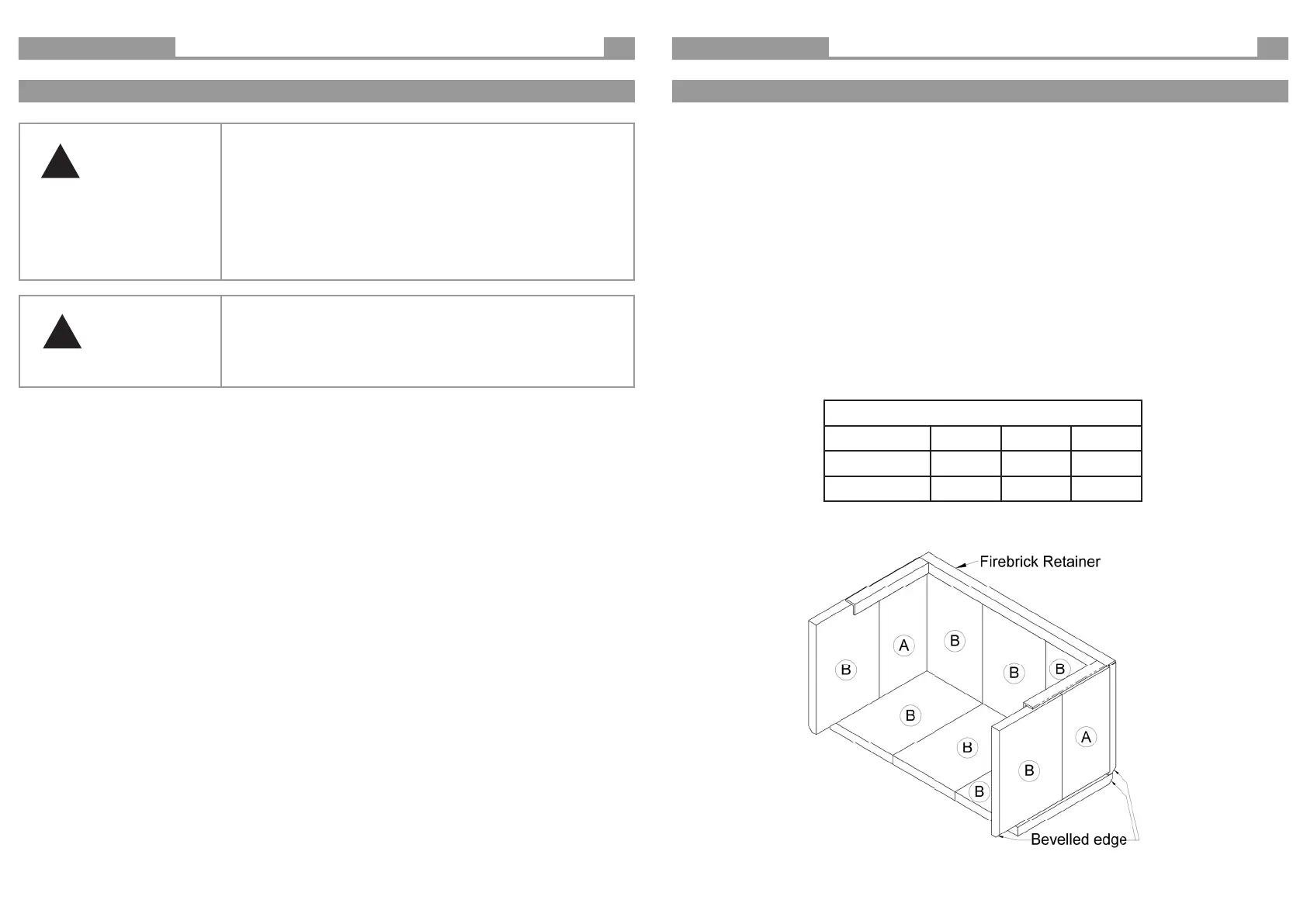 Table B - Firebricks