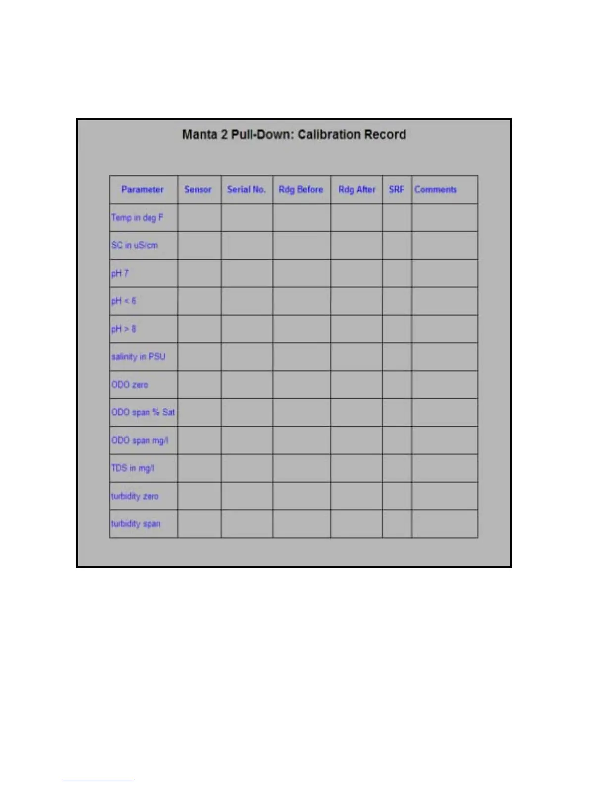 Eureka Manta 2 - Calibration Record