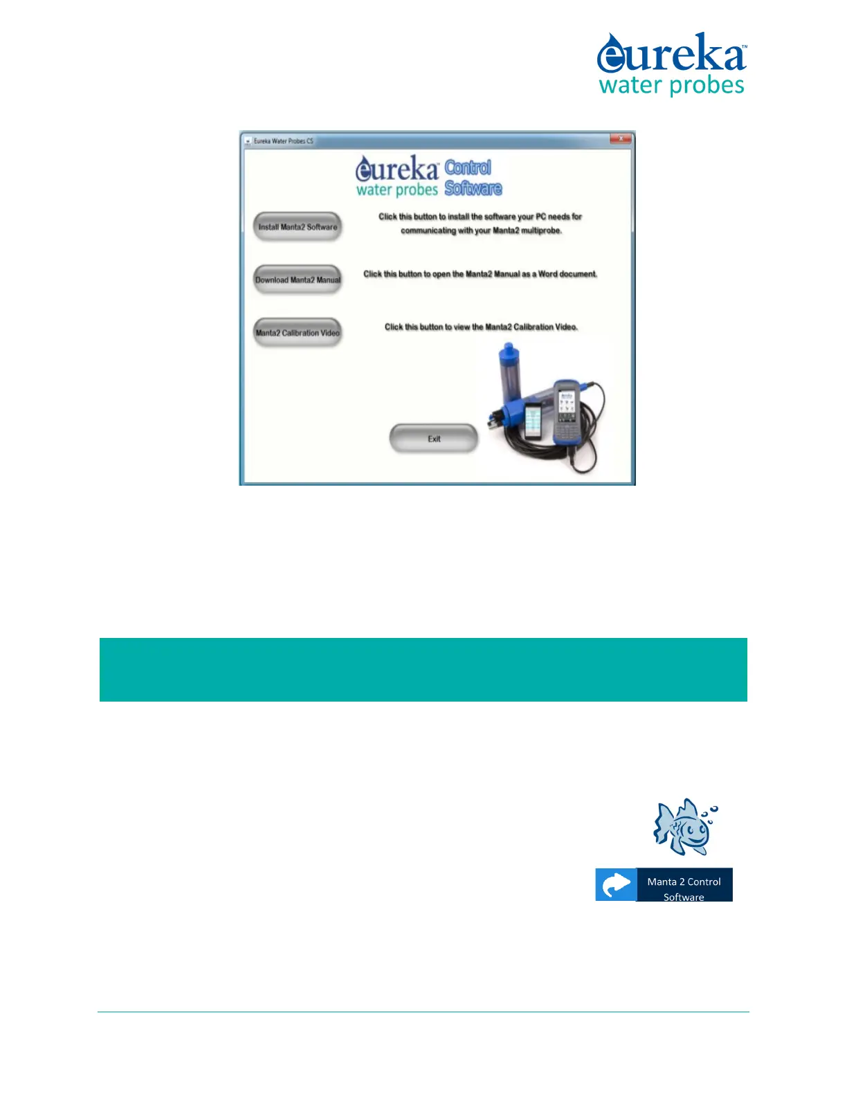 Cable or Underwater Cable. Click the Eureka “fish” icon to connect your PC and Manta. The Home