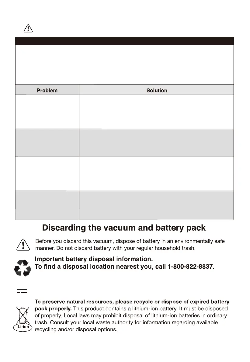 found, fix them and wait at least 30 minutes before attempting to use the vacuum.