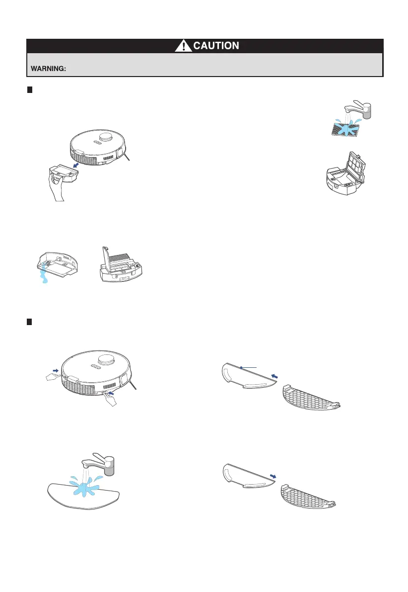 Never operate robot without all filters, filter screen and dustbin in proper position.
