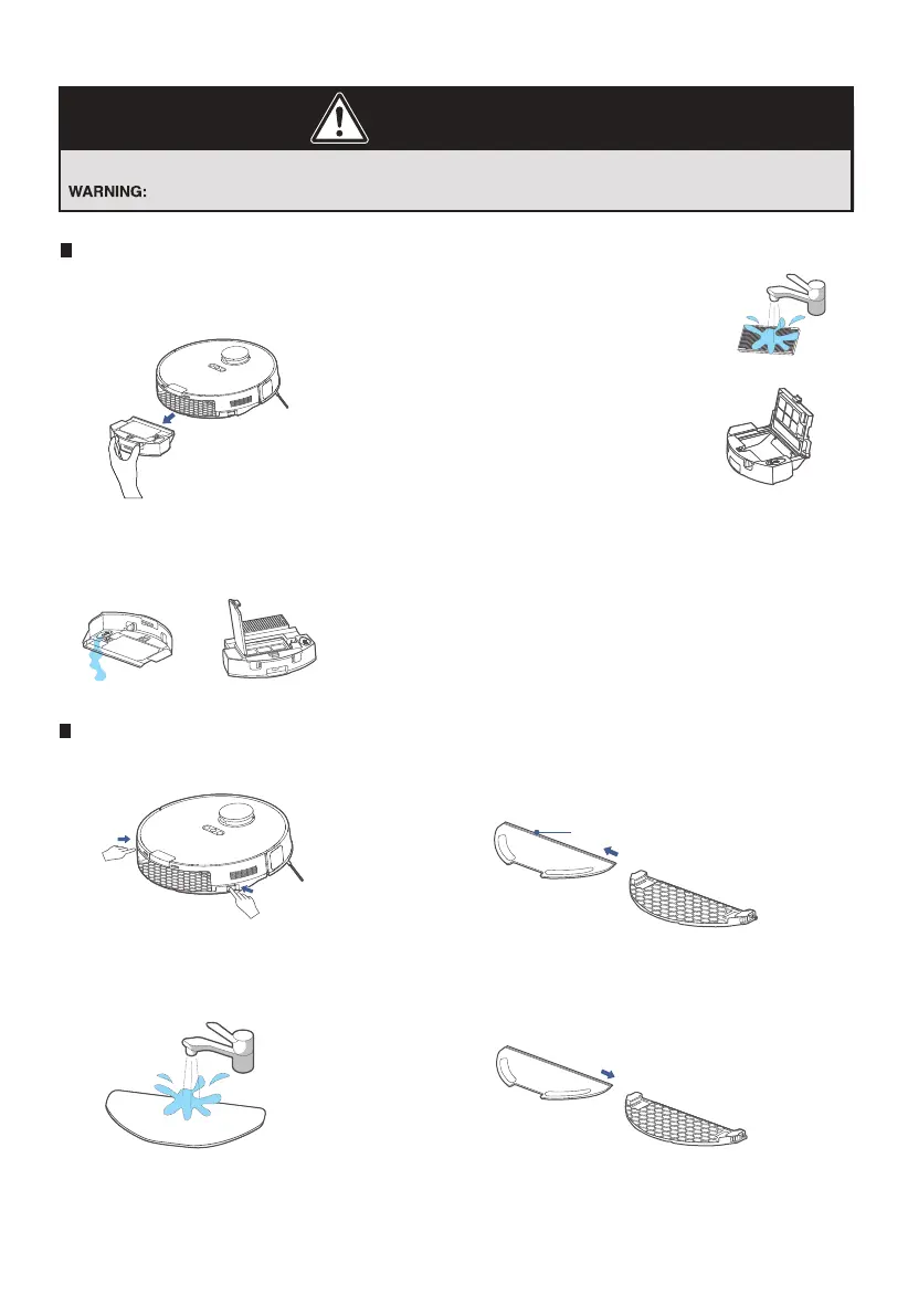 Never operate robotic vacuum without all filters, filter screen and dustbin in proper position.