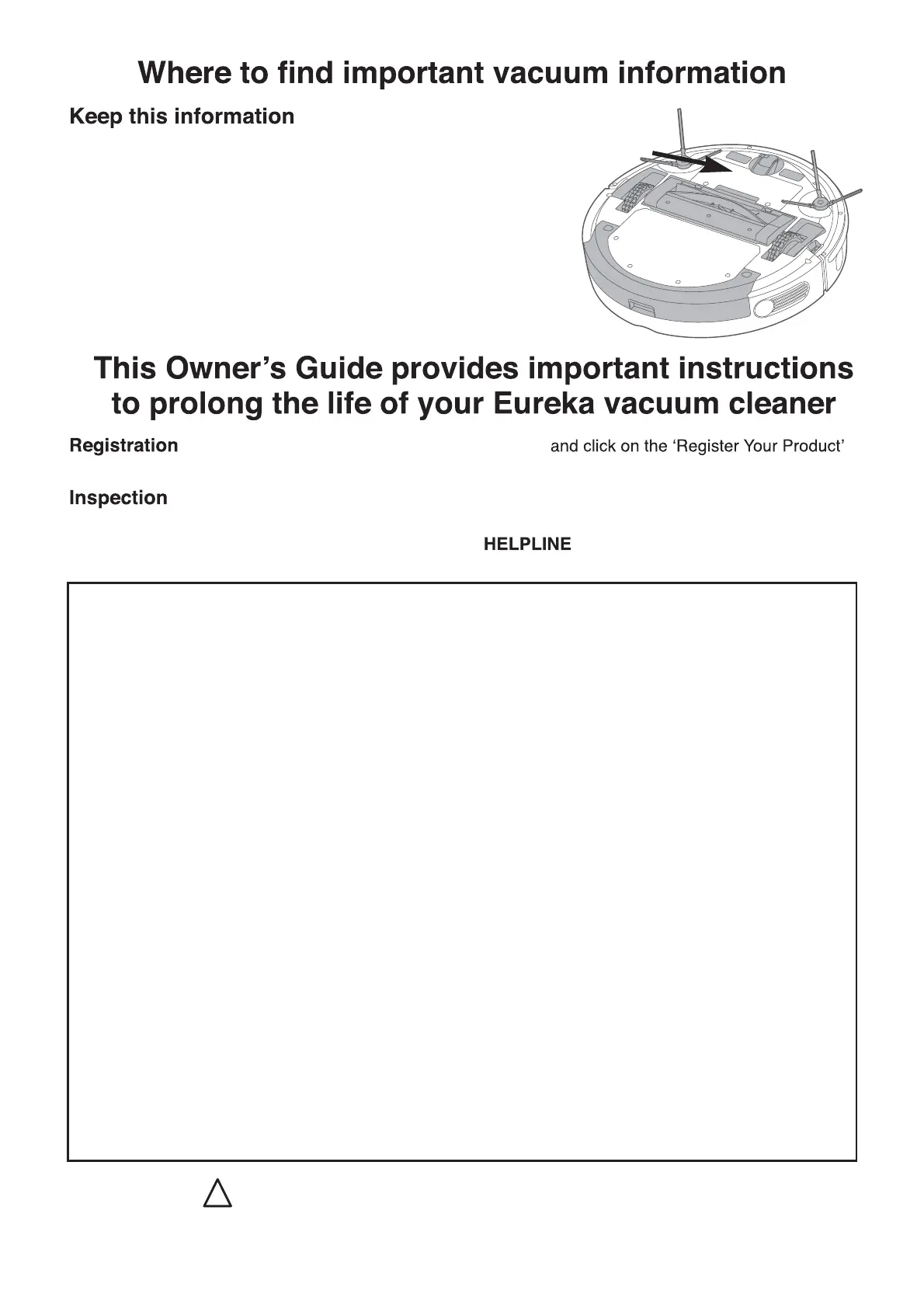 : Carefully unpack and inspect your new Eureka vacuum cleaner for shipping damage.