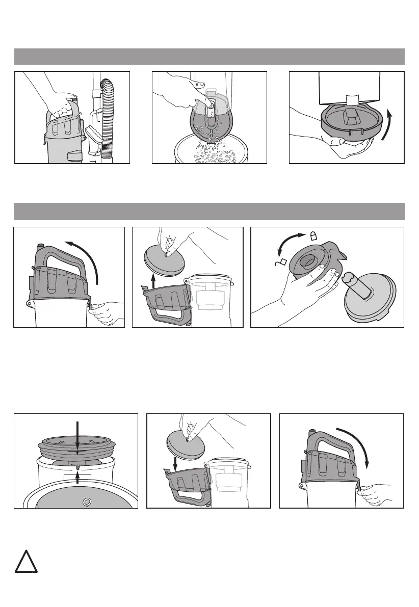 Warning: Never operate vacuum cleaner without foam filter and filter screen in proper