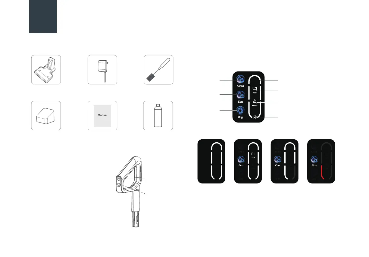 Self cleaning function: the battery indicator light displays a