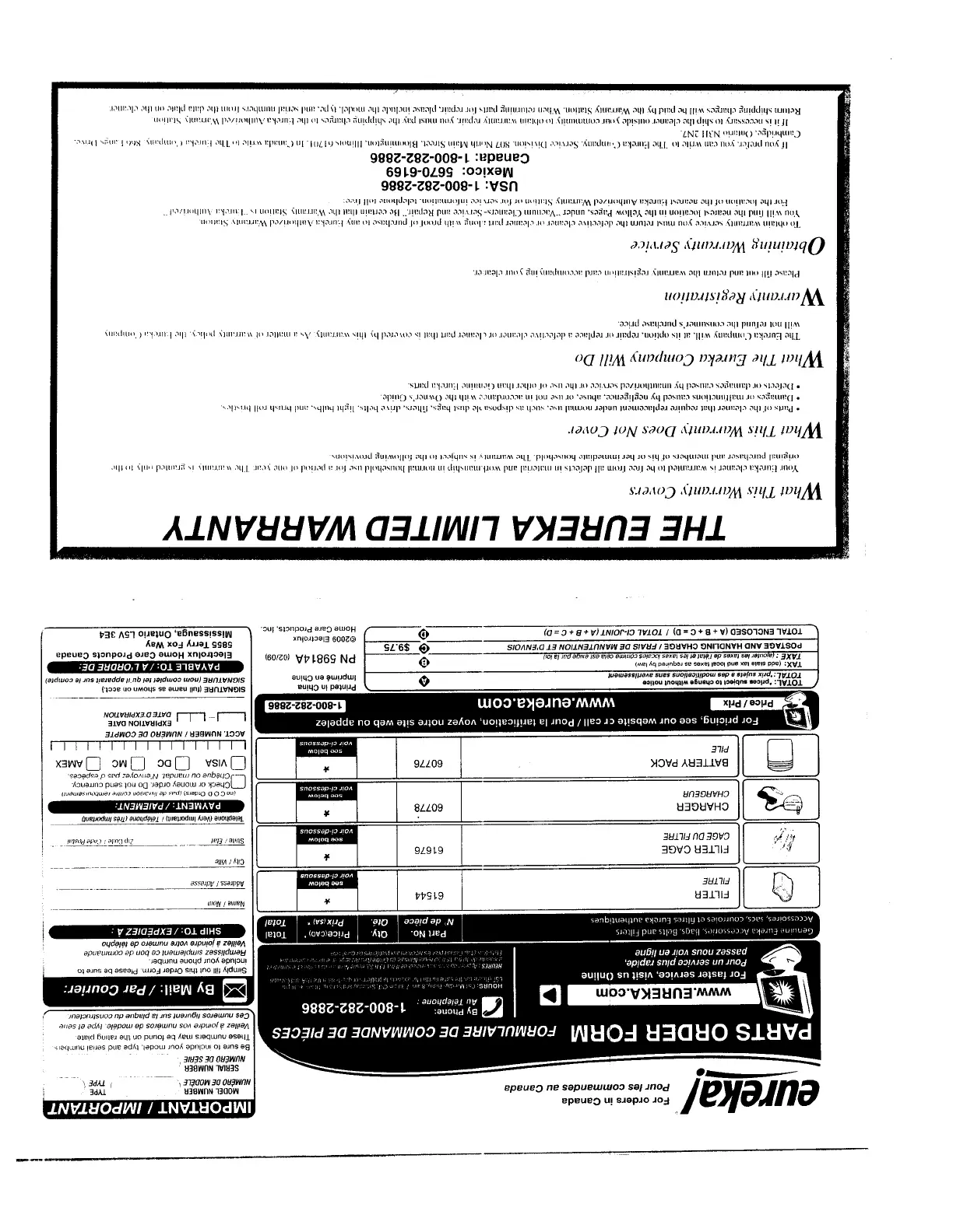 Eureka Quick Up 169B - The Eureka Limited Warranty; What This Warranty Covers; What This Warranty Does Not Cover; What The Eureka Company Will Do